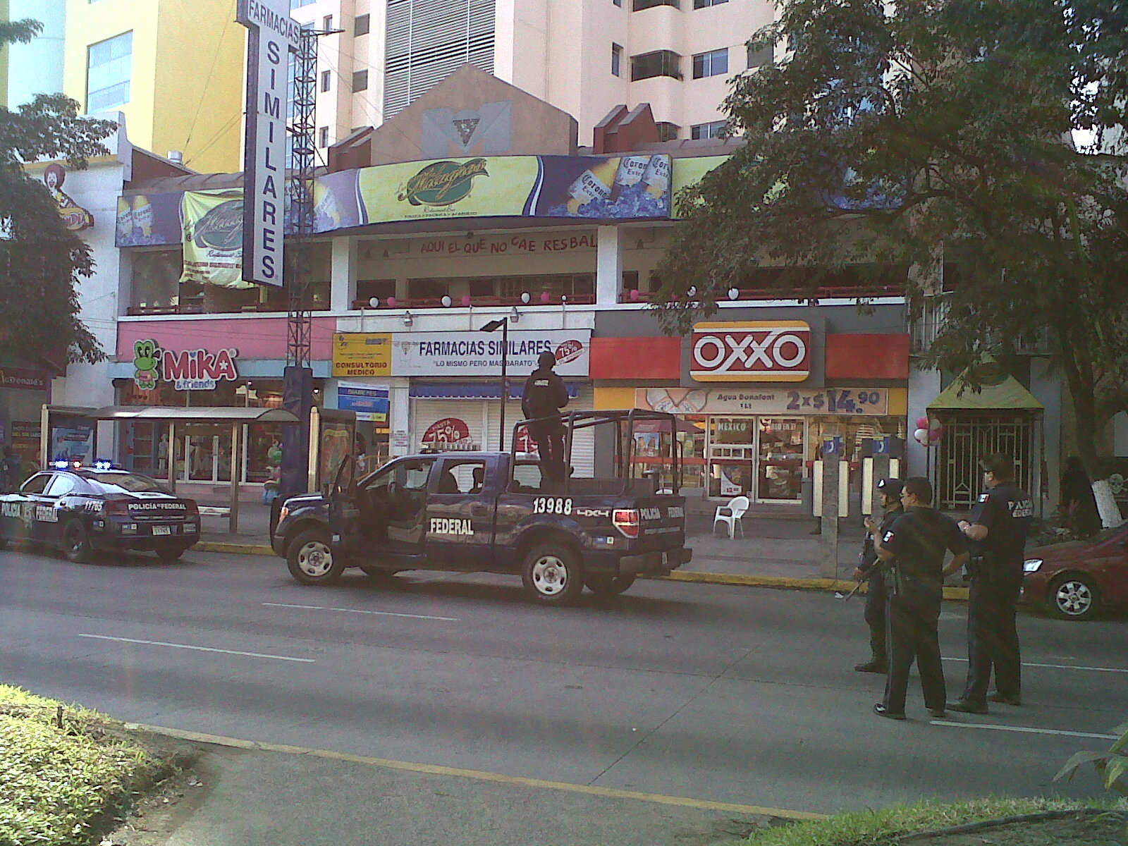 Agencia SINCOMPU-Acapulco, Gro. 15 de febrero de 2011.-Al menos tres personas resultaron heridas tras una riña que terminó en balacera en el interior del Bar "Los Milagros" que se ubica en Costera Miguel Alemán, frente al centro comercial La Gran Plaza.